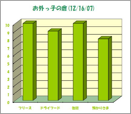 非常に逼迫しておりましたドライフードストックが満杯になりました。