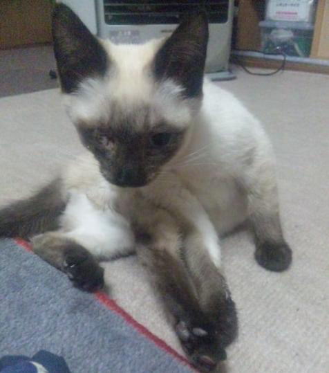 | 推定年齢 2ヶ月くらい 【仮称】 みこちゃん 【性別】 女の子 【色】 シャム系茶色ポイントさん。 【特徴】 長いしっぽ。青い目。 人にとても可愛い甘えんぼさん。 【保護の状況】 虐待のあった大学にて緊急保護。 右目眼球ありません。生活には問題なし。 慢性猫風邪引いておりますが健康状態良好。 蚤駆除・駆虫・ワクチン済み・エイズ白血病マイナス |